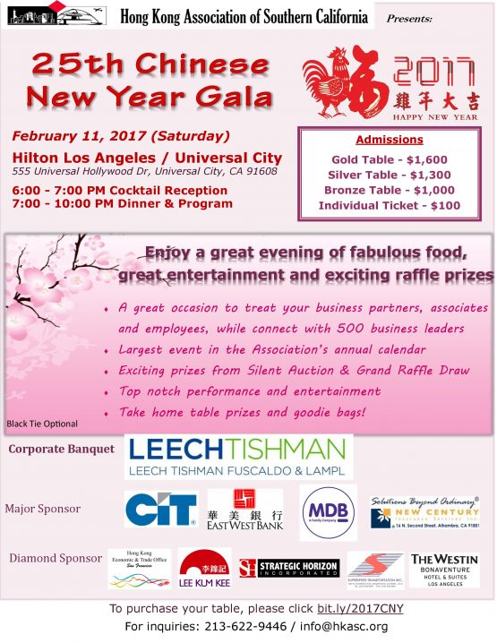 To buy tables or tickets, please click the following link: bit.ly/2017CNY