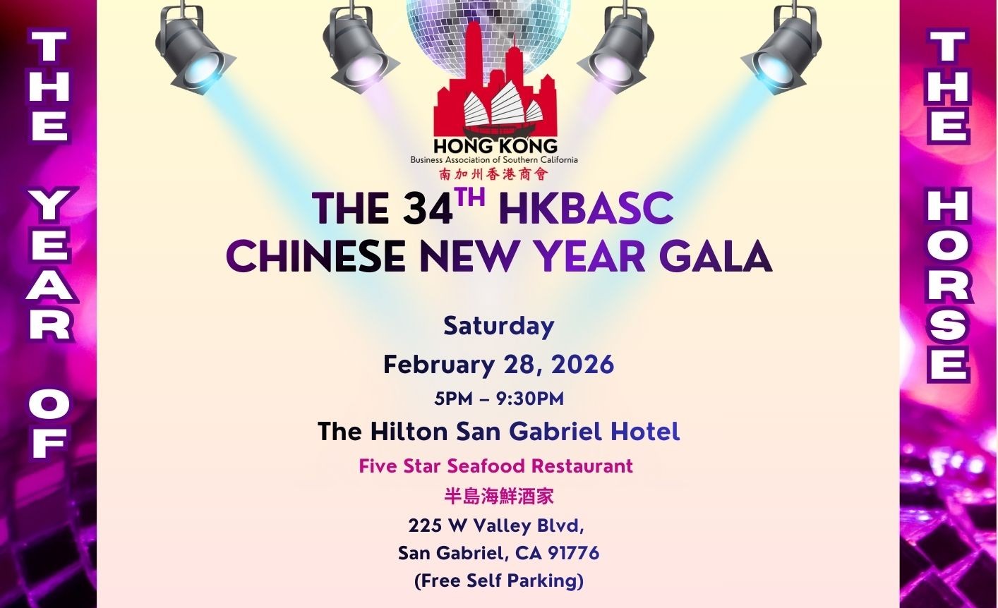 Celebrate the Lunar New Year with us at our 34th Chinese New Year Gala on Saturday, February 28, 2026. The evening will take place at the Hilton San Gabriel Hotel – Five Star Seafood Restaurant (半島海鮮酒家), located at 225 W Valley Blvd, San Gabriel, CA 91776, with free self-parking available.